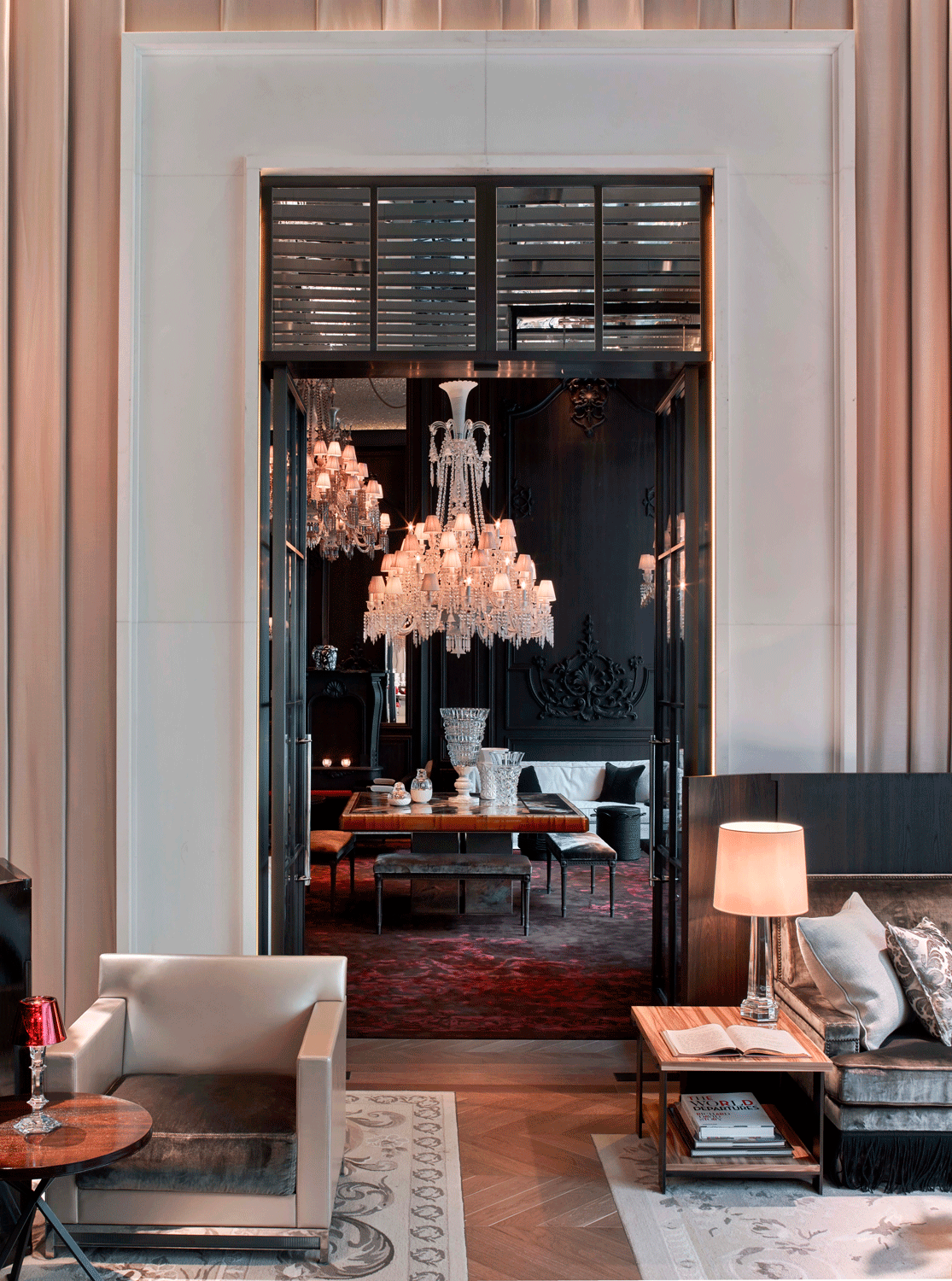 In directing the design of this hotel, we drew inspiration from the Baccarat factory in France, celebrating both the raw and the refined, which both part of the crystal making story.